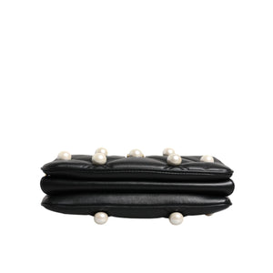 Dolce & Gabbana Black Leather Pearl Embellished Logo Shoulder Bag