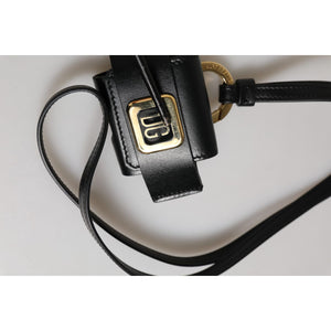 Dolce & Gabbana Black Leather Strap Gold Metal DG Logo Plaque Airpods Case