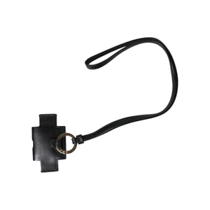 Dolce & Gabbana Black Leather Strap Gold Metal Logo Plaque Airpods Case