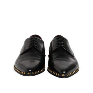 Dolce & Gabbana Black Leather Studded Derby Men Dress Shoes