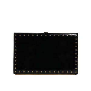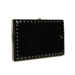 Dolce & Gabbana Black Leather Studs Gold Frame Clutch Evening Purse Bag