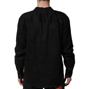 Dolce & Gabbana Black Linen Long Sleeves Men Casual Shirt