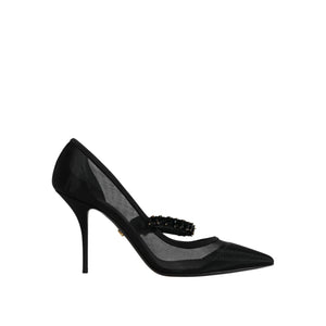 Dolce & Gabbana Black Mesh Mary Jane Crystal Heel Pump Shoes