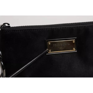Dolce & Gabbana Black Nylon Logo Plaque Keyring Pouch Clutch Bag