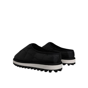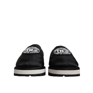 Dolce & Gabbana Black Nylon Quilted Logo Patch Sandals Slides Shoes