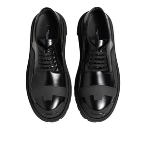 Dolce & Gabbana Black Patent Leather Trekking Derby Shoes