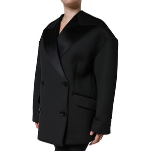 Dolce & Gabbana Black Polyester Double Breasted Coat Jacket