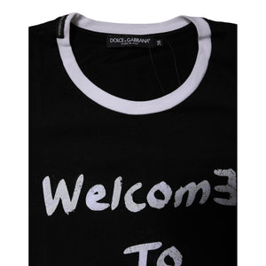 Dolce & Gabbana Black Printed Round Neck Top Cotton T-shirt
