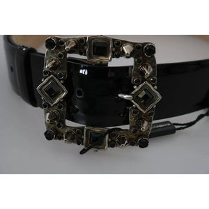Dolce & Gabbana Black Shiny Leather Crystal Logo Buckle Belt