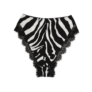 Dolce & Gabbana Black Silk Zebra Print Lace High Waist Underwear