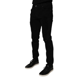 Dolce & Gabbana Black Tattered Cotton Skinny Men Denim Jeans