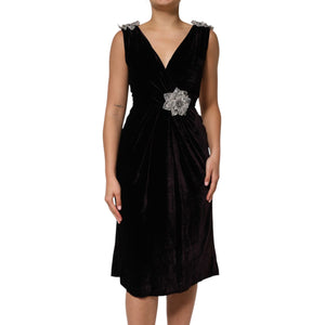 Dolce & Gabbana Black Velvet Flower Embellishment Aline Dress