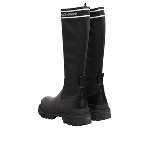 Dolce & Gabbana Black White Polyester Socks High Boots Shoes
