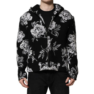 • Dolce & Gabbana Black Wool Floral Printed Men Hooded Jacket