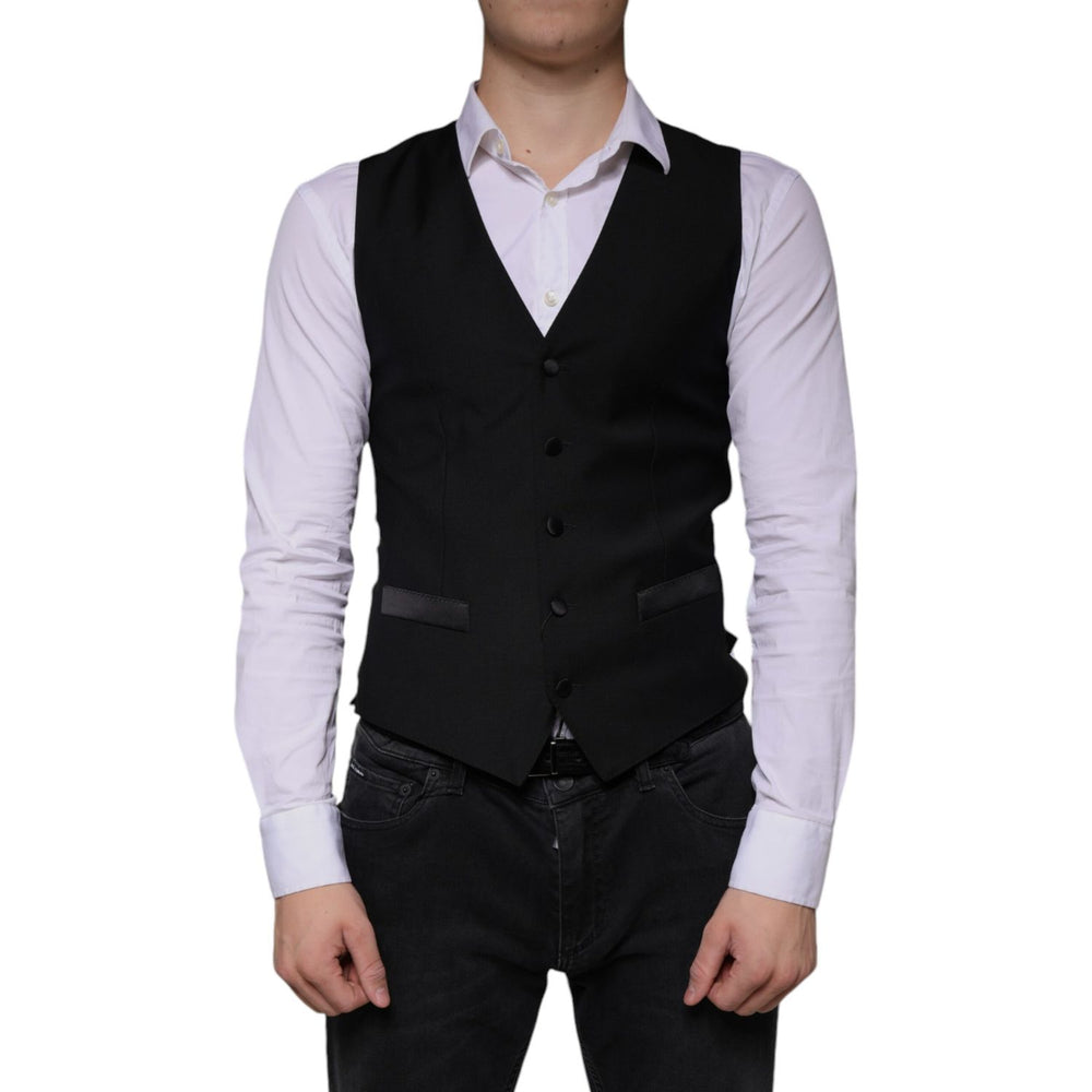 • Dolce & Gabbana Black Wool Waistcoat Dress Formal Vest