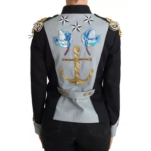 Dolce & Gabbana Blue Button Crystal Embellished Cotton Jacket
