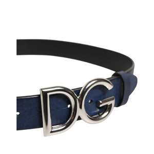 Dolce & Gabbana Blue Classic Silver Metal DG Logo Buckle Belt
