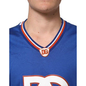 Dolce & Gabbana Blue Cotton DG Logo Mesh Jersey T-shirt