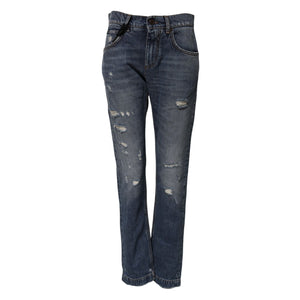 Dolce & Gabbana Blue Cotton Tattered Boyfriend Denim Jeans