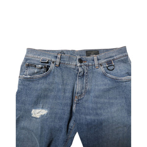 • Dolce & Gabbana Blue Cotton Tattered Skinny Logo Denim Jeans