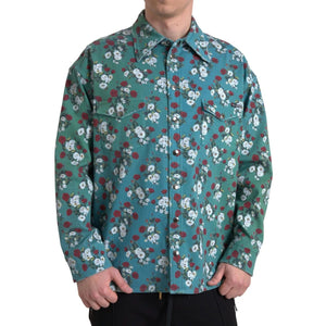 Dolce & Gabbana Blue Floral Cotton Button Down Denim Shirt