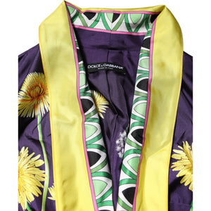 Dolce & Gabbana Blue Floral Print Silk Long Sleeves Wrap Robe