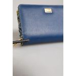 Dolce & Gabbana Blue Leather Continental Tile Print Zip Card Holder Purse Wallet