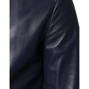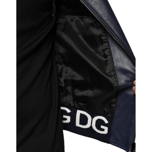 Dolce & Gabbana Blue Leather Full Zip Hooded Bomber Jacket