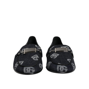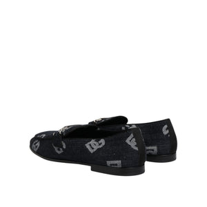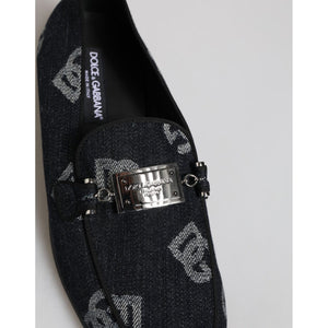Dolce & Gabbana Blue Logo Cotton Loafers Formal Dress Shoes