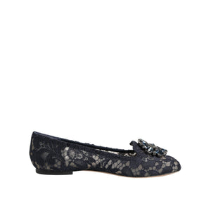 Dolce & Gabbana Blue Taormina Lace Crystals Flats Shoes