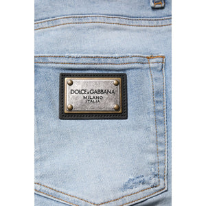 Dolce & Gabbana Blue Tattered Cotton Skinny Men Denim Jeans