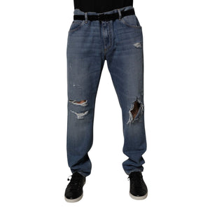 Dolce & Gabbana Blue Tattered Cotton Straight Denim Jeans