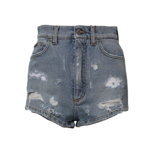 Dolce & Gabbana Blue Tattered Denim Cotton Hot Pants Shorts