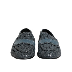 Dolce & Gabbana Blue Woven Raffia Slip On Loafers Shoes