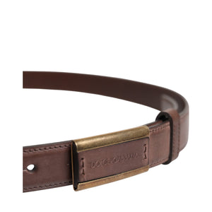 Dolce & Gabbana Brown Calf Leather Antique Buckle Belt