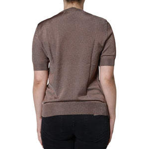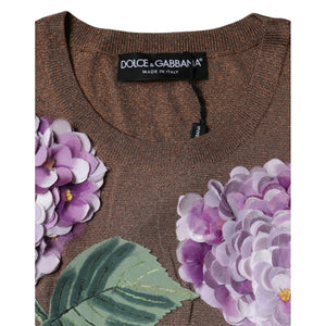 Dolce & Gabbana Brown Floral Applique Viscose Short Sleeve Top