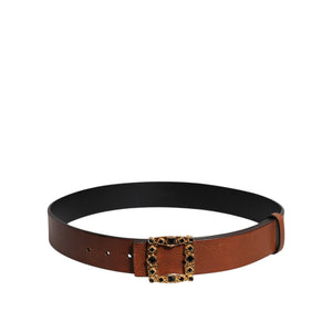 Dolce & Gabbana Brown Leather Gold Crystal Buckle Belt