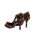 Dolce & Gabbana Brown Leopard Crystal Roses Pumps Shoes