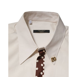 Dolce & Gabbana Cream White Cotton Polka Dot Slim Fit Shirt