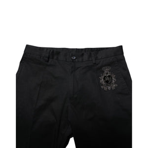 Dolce & Gabbana Dark Blue Logo Cotton Dress Pants