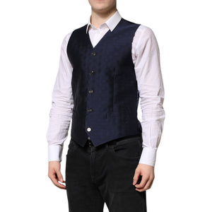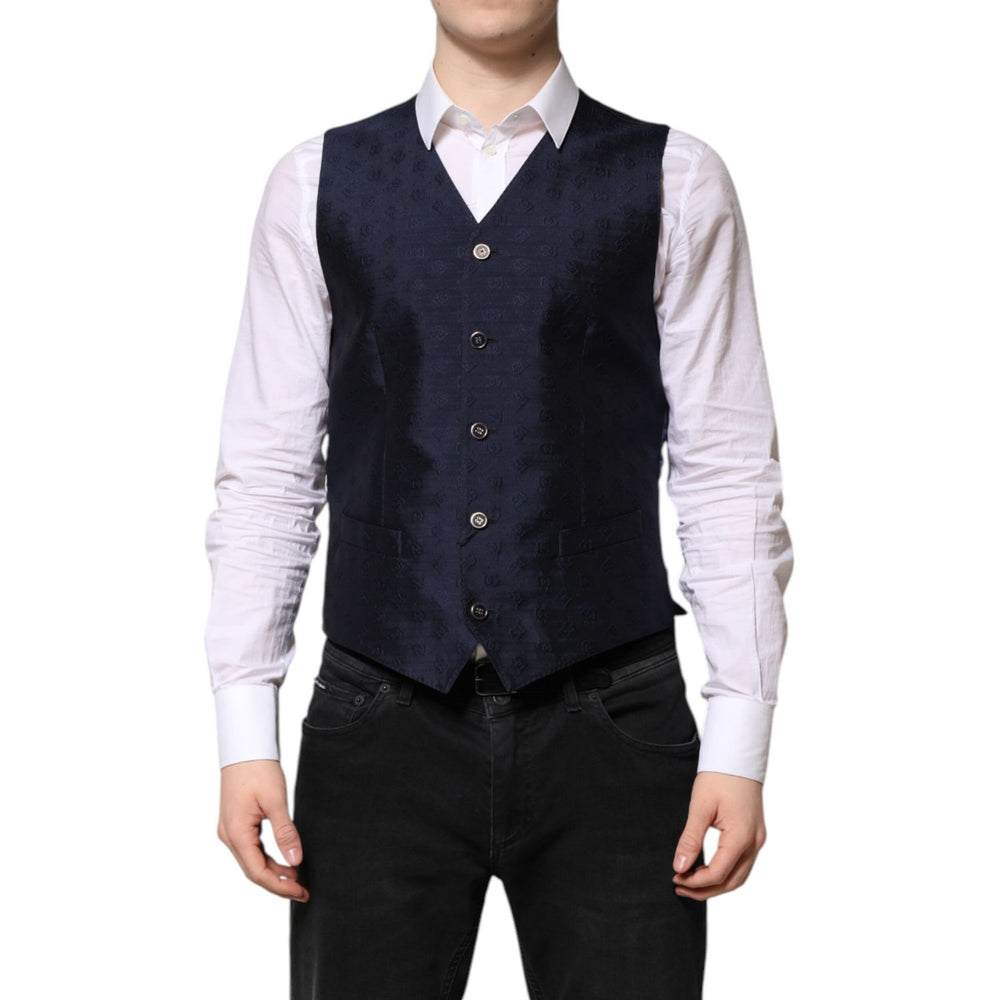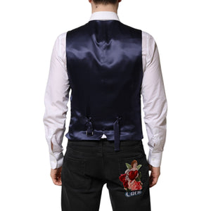 Dolce & Gabbana Dark Blue Logo Wool Formal Men Waistcoat Vest