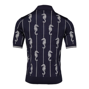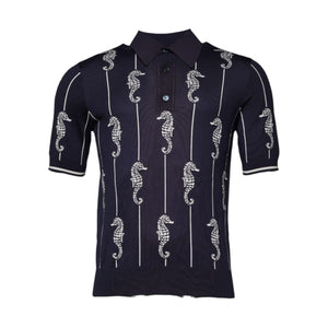 • Dolce & Gabbana Dark Blue Sea Horse Collared Polo T-shirt