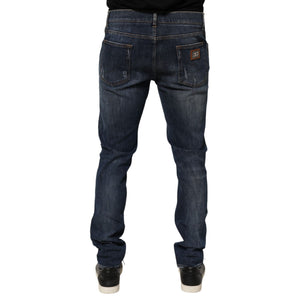 Dolce & Gabbana Dark Blue Washed Running Ripped Denim Jeans