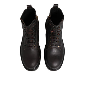Dolce & Gabbana Dark Brown Leather Lace Up Mid Calf Boots Shoes