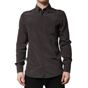 Dolce & Gabbana Dark Brown Silk GOLD Men Dress Formal Shirt