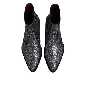 Dolce & Gabbana Dark Gray Cotton Sequined Chelsea Boots Shoes