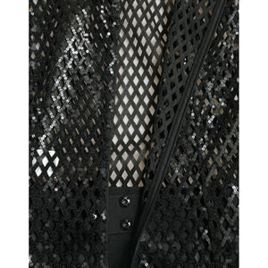 Dolce & Gabbana Black Sequined Sleeveless Mesh Layered Gown Dress