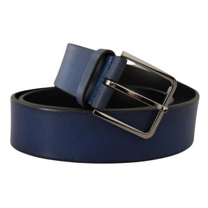 Dolce & Gabbana Blue Calf Leather Silver Metal Buckle Classic Belt