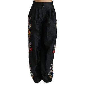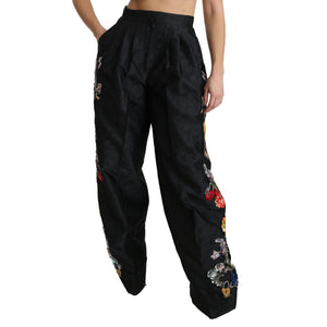 Dolce & Gabbana Black Brocade Floral Sequined Beaded Pants