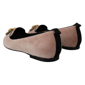 Dolce & Gabbana Pink Velvet Slip Ons Loafers Flats Shoes